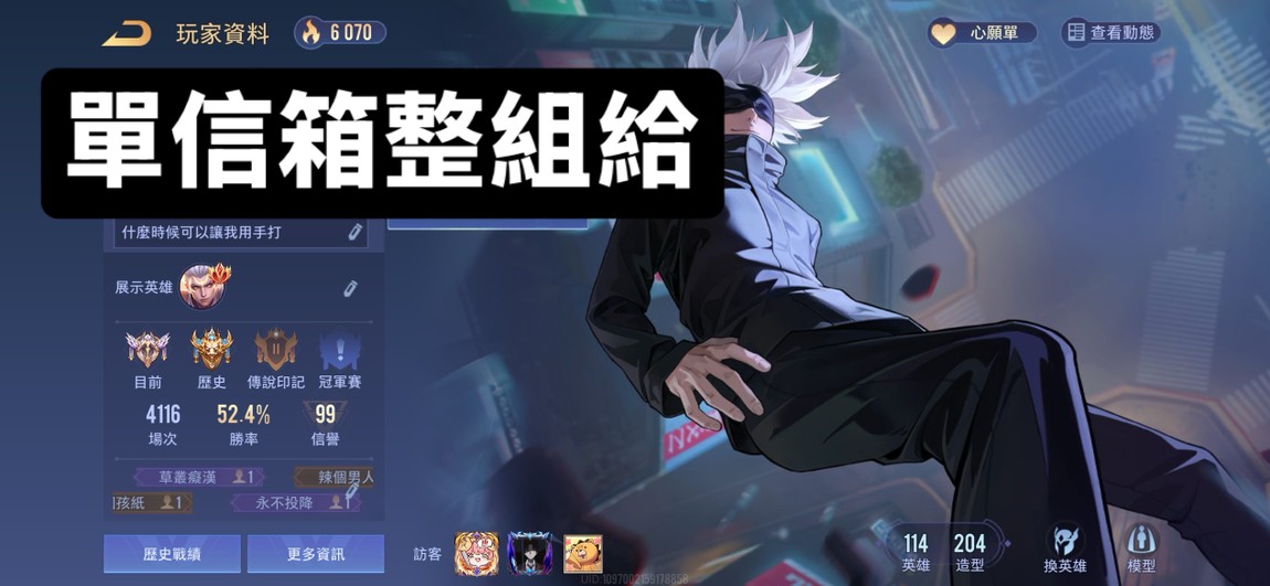【Garena帳有綁定、先鋒傳說·新月、V7、114英、204造】五條 伏黑 四星際 多直購