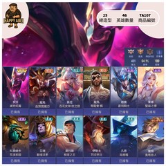 【Garena帳有綁定、青銅、V1、46英、25造】[分期/直購]快樂阿北遊戲館~月付400元起 主打亥犽滅世