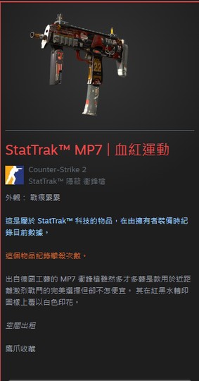 StatTrak™ MP7 | 血紅運動