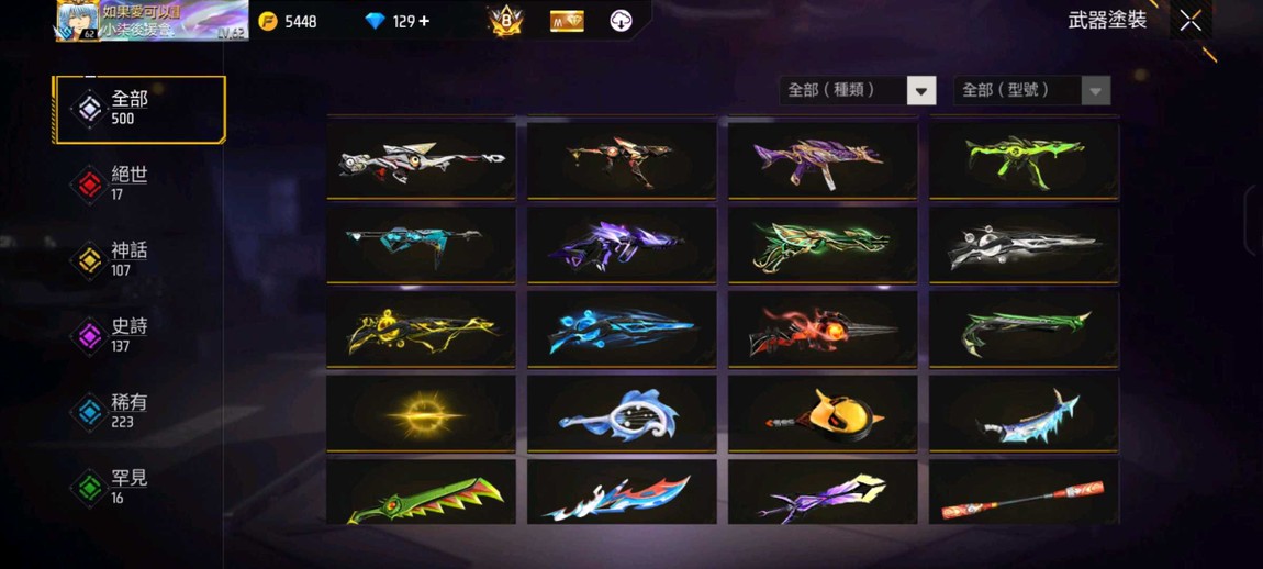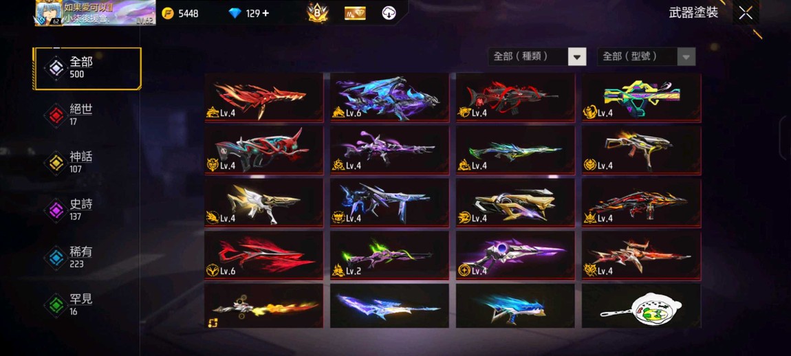 【777等】✨500武480衣✨有銀魂.火影.咒術聯動✨17把絕世槍✨武器帳✨