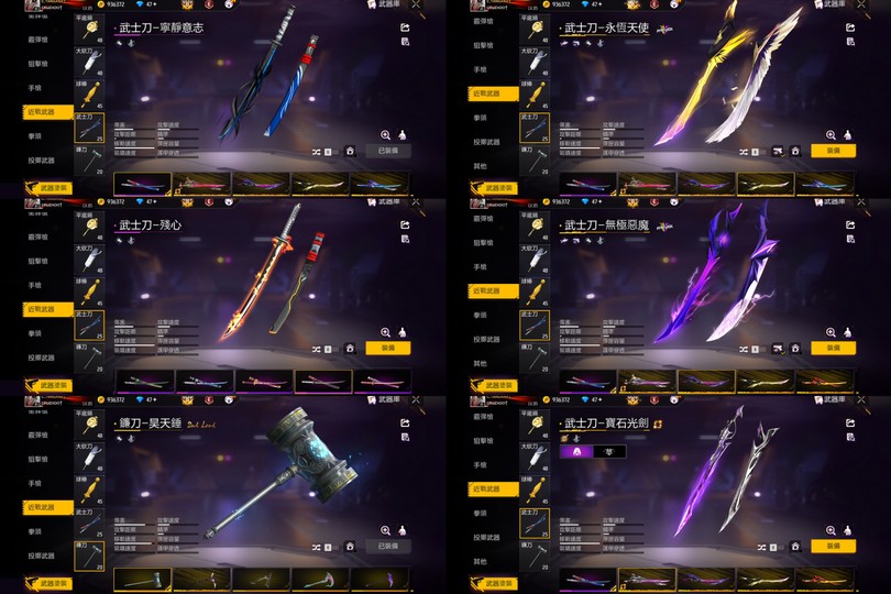 武士刀:寧靜意志,寶石光劍,永恆天使丶惡魔,殘心
