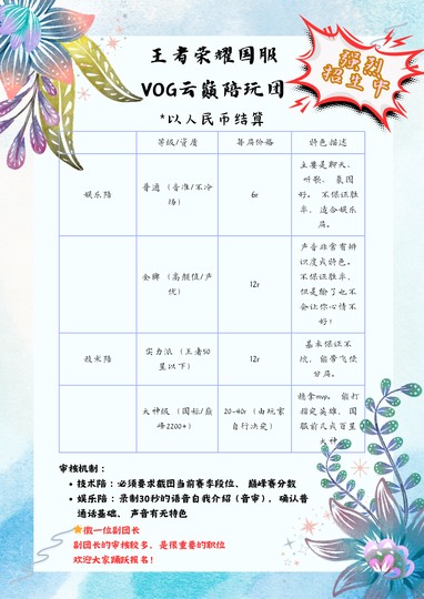 目前陪玩團只有我一個人,還在招生中,有意者也可以私我!無論是娛樂陪還是技術陪都需要審核