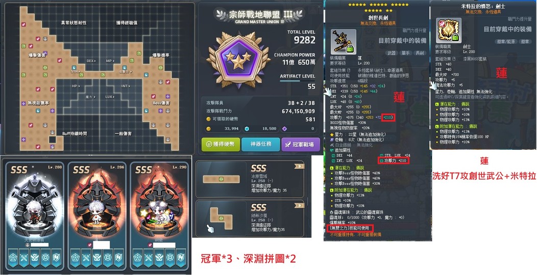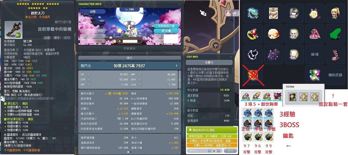 全身22星、永恆裝22星,永恆-7帽,多隻分身可培養,掉寶楓幣裝皆有
