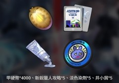 甲硬幣*4000、新銳獵人攻略*5、淡色染劑*5、井小屑*5