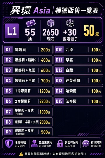 1. 下單前請先私訊詢問庫存,避免售完或價格異動。 2. 商品皆為人工手動交付,非自動發貨,客服會依序回覆。 3. 下單後請提供訂單編號及欲購買的款式/DLC編號。 4. 帳號交付後請立即確認內容,並儘速修改密碼、綁定資料。 5. 虛擬商品售出後,除內容錯誤外恕不退換或取消。 6. 因設備、網路、地區限制或官方問題無法登入,恕不負責。 7. 惡意棄單、跑單、退款者,一律列入黑名單。 8. 指定角色或特殊組合可先私訊詢問現貨與價格。